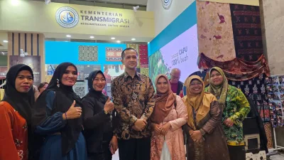 Menteri Transmigrasi Iftitah Sulaiman saat kunjungi Incraft 2026 di Jakarta.