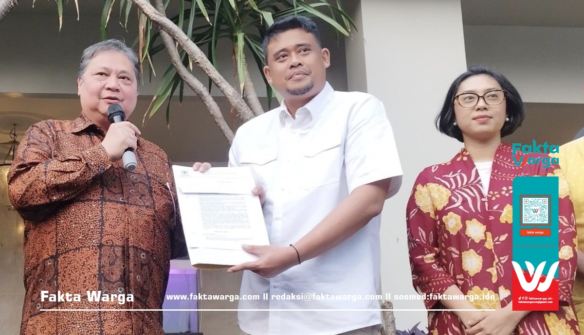 Fakta warga – Airlangga Hartarto Ketua Umum Partai Golkar, mengungkapkan Golkar telah resmi mengusung menantu Presiden Joko Widodo (Jokowi), Bobby Nasution maju sebagai calon gubernur di Pilkada Sumatera Utara (Sumut) 2024.